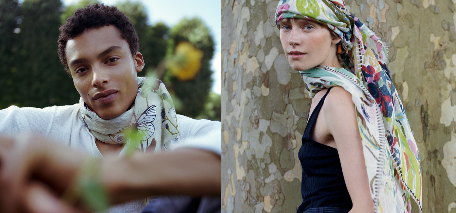 機能性にこだわり、アーカイブ柄をアレンジして再現した傘はストールを纏うような美しさです。夏本番を前に、ぜひご覧くださいませ。