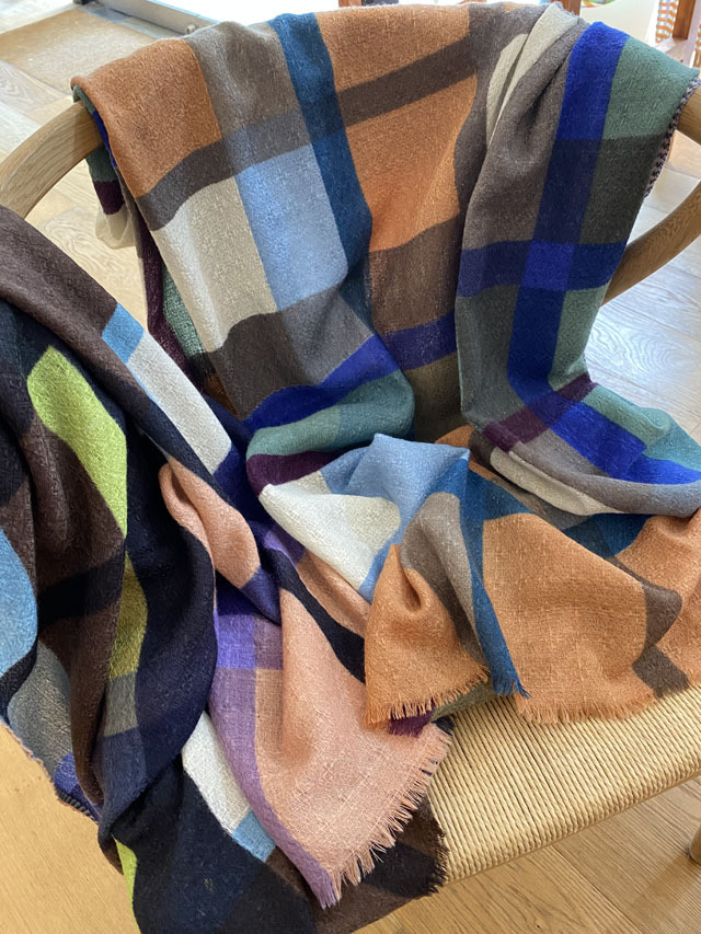エピスの定番グループに「北欧カルチャー」「ヒュッゲ」を表現するデンマークチェック柄が加わりました。中でも大胆なカラーがよりグラフィックに表現されたCHECK5はダイナミックな構図とデザイナーこだわりのカラーリングが、セルヴィッチ(縁)の織り柄で完成され、圧倒的な存在感です。