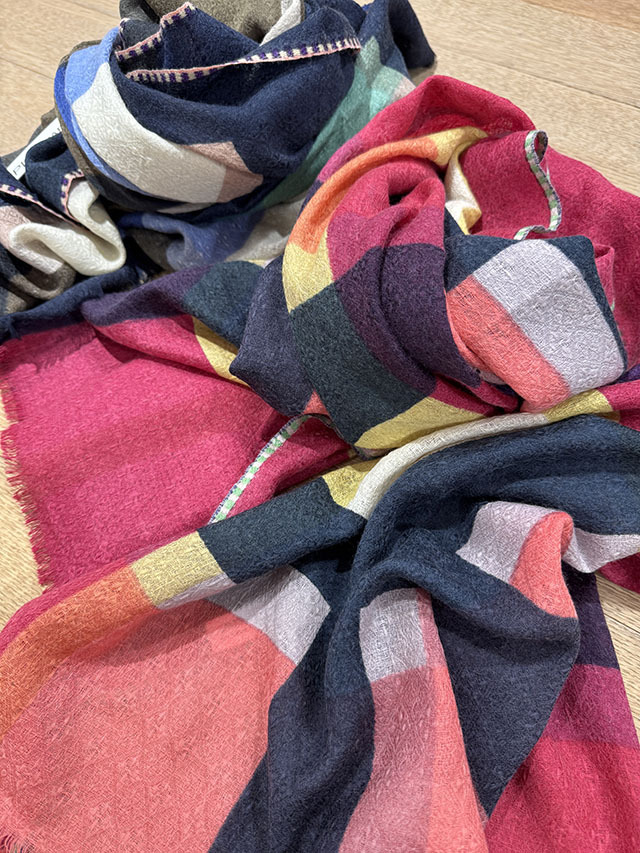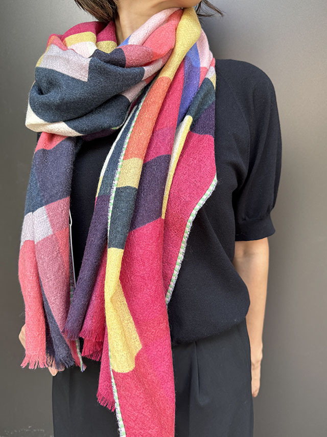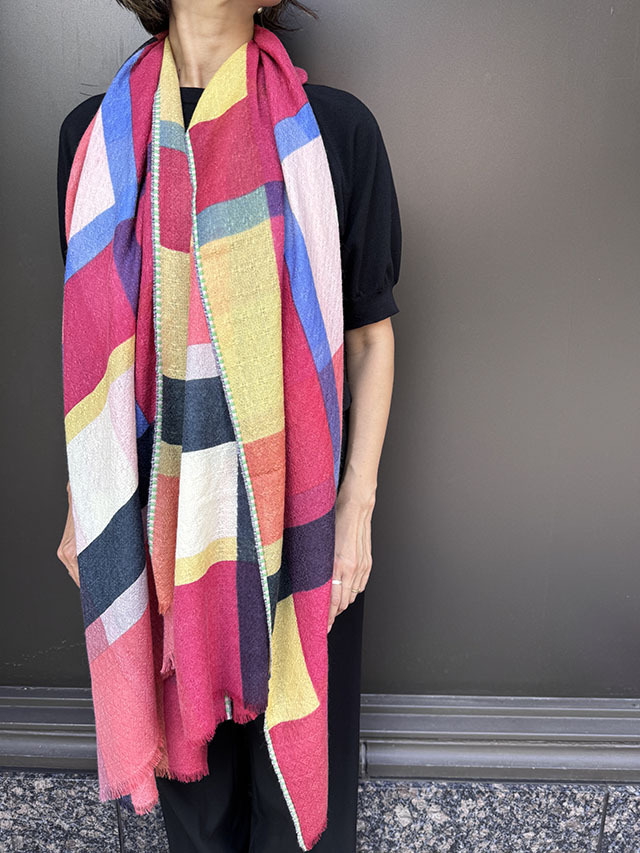エピスの定番グループに「北欧カルチャー」「ヒュッゲ」を表現するデンマークチェック柄が加わりました。中でも大胆なカラーがよりグラフィックに表現されたCHECK5はダイナミックな構図とデザイナーこだわりのカラーリングが、セルヴィッチ(縁)の織り柄で完成され、圧倒的な存在感です。