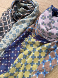 古い北欧テキスタイルやインテリアにあるような細かな連続パターン。北欧の伝統衣装にあるチェック柄をグラフィック化した柄をコラージュしてできたパターンは北欧カラーがマッチし、独力な魅力を放っています。