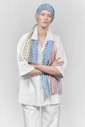 素材は薄手のシルクコットン、ストライプ状に抜き織りが施されているため、上品な透け感と軽やかな巻き心地を楽しめます。