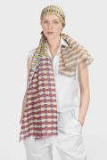 アイコニックのチェック柄は、北欧カラーが大胆かつ独創的に組み合わせられ、この季節のエネルギーやパッションが感じられます。9色ものカラフルな色の組み合わせや上下で異なる3つのパネルによる視覚的な効果はエピスならではのもの、巻き方で異なる印象を演出できます。