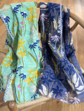 上質なコットンリネン素材は、軽やかな着け心地と涼やかな表情が魅力。ミントグリーンと奥行きのあるブラウンパープルの色が甘さを抑え、日常からリゾートまで長く愛用できる一枚です。
