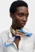 70cmスクエアは、コンパクトに巻くだけでなく、折り方や結び方で自在にアレンジ可能。日よけや冷房対策にも活躍し、手洗いもできます。装いにやさしい彩りを添え、ギフトにもおすすめです。