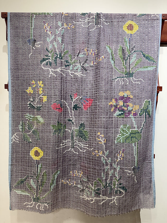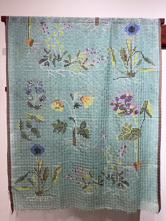 繊細な透かし織りの生地とセルベッジのラインが、デザインの美しさを引き立てます。