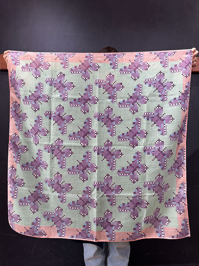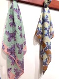 90cmスクエアは存在感のある万能サイズ。首元にゆったり巻くだけでなく、三角折りや肩掛けなど自在にアレンジでき、通年活躍します。