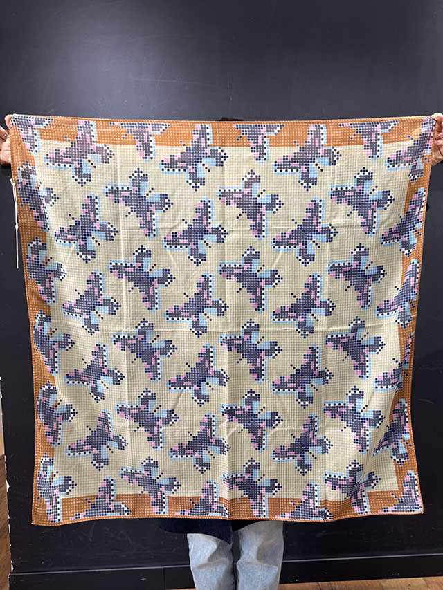 北欧寓話をテーマにした今季コレクションから、人気の「刺繍柄」が復刻しました。スカンジナビアの伝統刺繍に着想を得て、布目を思わせる背景に蝶を一針ずつ刺したように描いたデザイン。ニュアンス豊かな配色が、幻想的で奥行きのある世界観を演出します。
