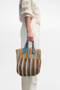 春夏に人気のメッシュバッグのシリーズ。おしゃれなうえに軽くて丈夫、取り外しのできる同布のポーチ付きです。ボーダー柄はエピスのアイコン柄の一つですが、今季は、輝く太陽の光線を表現したもので、これまでと異なる色調が新鮮です。
