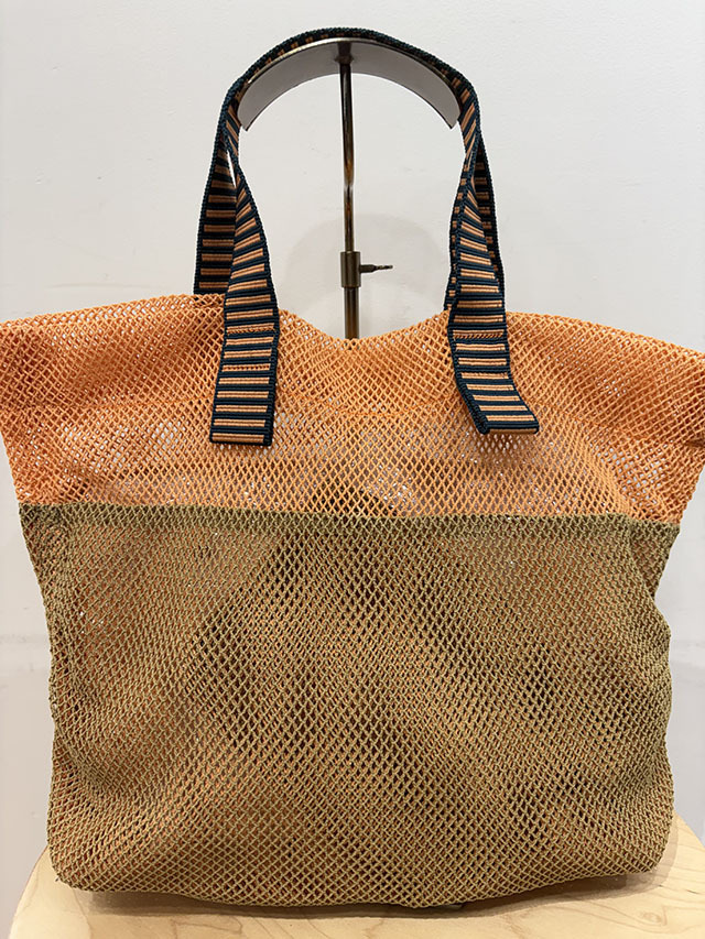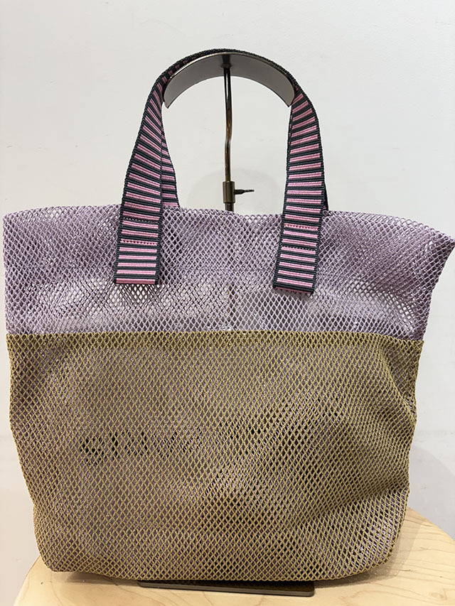 人気のメッシュバッグ、バイカラーに新色が登場。パリジェンヌを思わせるシンプルシックな佇まいで、柄ものにも劣らない存在感です。軽くて丈夫なポリエステルメッシュ素材。汚れにくく、水に濡れても安心で、取り外し可能な同布ポーチ付き。
