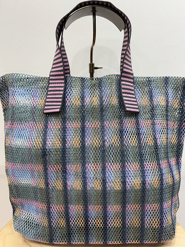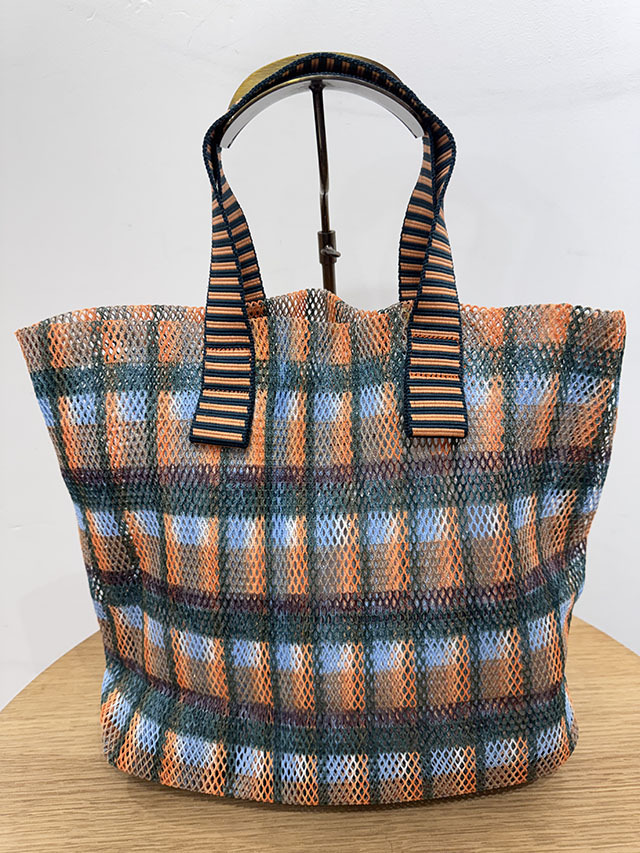 春夏に人気のメッシュバッグシリーズ。軽くて丈夫、おしゃれに持てるバッグです。取り外し可能な同布ポーチ付き。エピスのアイコンである北欧チェック柄を、今季のカラーパレットでアップデートした格子デザイン。