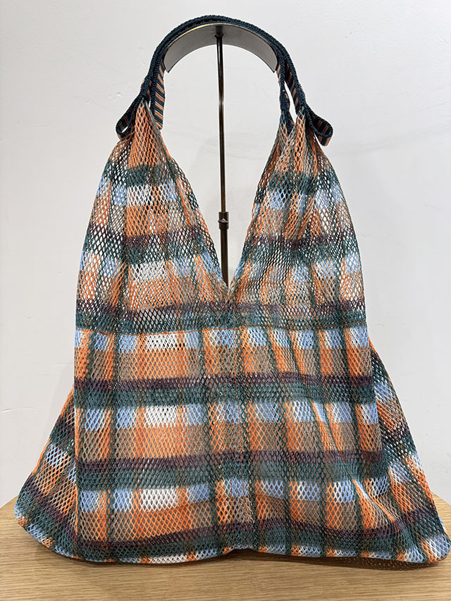 春夏に人気のメッシュバッグシリーズ。軽くて丈夫、おしゃれに持てるバッグです。取り外し可能な同布ポーチ付き。エピスのアイコンである北欧チェック柄を、今季のカラーパレットでアップデートした格子デザイン。
