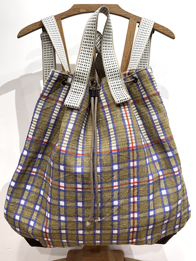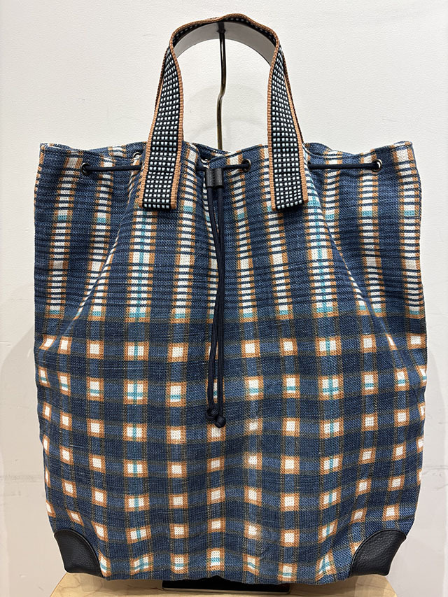 人気の麻バッグシリーズの2WAYバックパック。手提げとトートの両用仕様です。エピスを象徴するチェック柄を、ブロックチェック風のモダンなチェックパターンへアップデート、奥行きのあるカラーパレットで表現しました。北欧らしいやわらかな空気感があり、春夏の装いにさりげないアクセントを添えます。