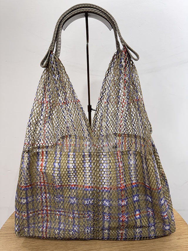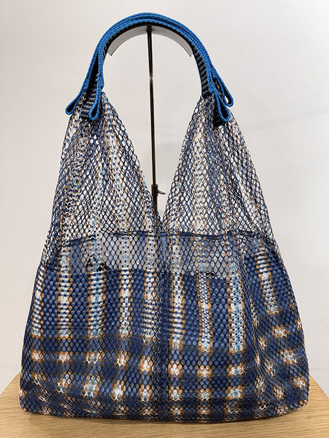 メッシュバッグシリーズの内布付きタイプ。同柄プリントの内布を合わせ、中が見えにくい仕様です。取り外し可能な同布ポーチ付き。エピスのアイコンであるチェック柄を、ブロックチェック風の格子柄へアップデート。