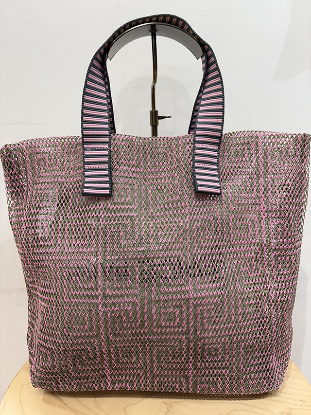 春夏に人気のメッシュバッグシリーズ。軽くて丈夫、おしゃれに持てるバッグです。取り外し可能な同布ポーチ付き。おとぎ話の迷宮を軽やかな幾何学パターンで表現したラビリンス柄。「MAGICAL UNIVERSE」を象徴する、希望や未知への憧れを込めたデザインです。