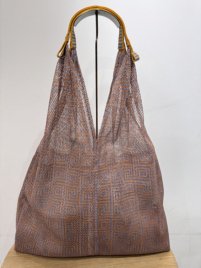 春夏に人気のメッシュバッグシリーズ。軽くて丈夫、取り外し可能な同布ポーチ付きです。おとぎ話の迷宮を軽やかな幾何学パターンで表現したラビリンス柄。「MAGICAL UNIVERSE」を象徴するデザインです。