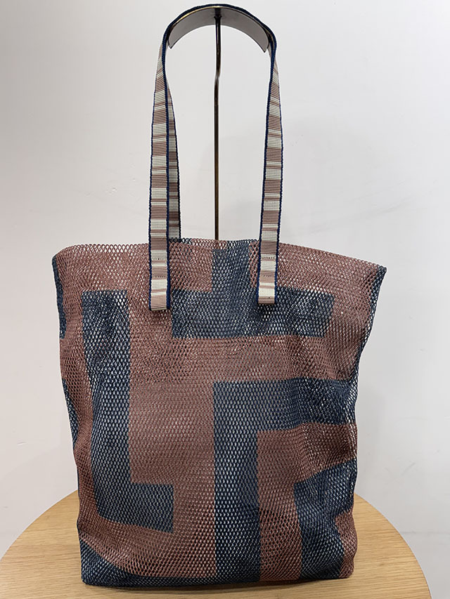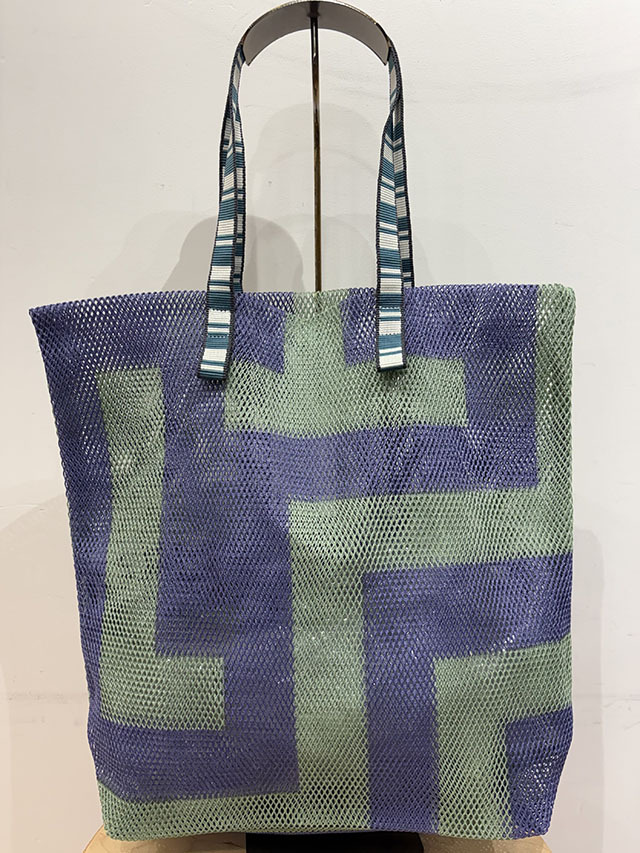 春夏に人気のメッシュバッグシリーズ。軽くて丈夫、おしゃれに持てるバッグです。取り外し可能な同布ポーチ付き。おとぎ話の迷宮を、軽やかな幾何学パターンで表現したラビリンス柄。ラビリンスとは人生の旅や未知の世界への憧れを表すデザインで、ヨーロッパで古くから親しまれ、多くのブランドで取り入れられています。