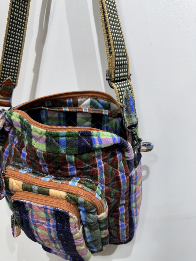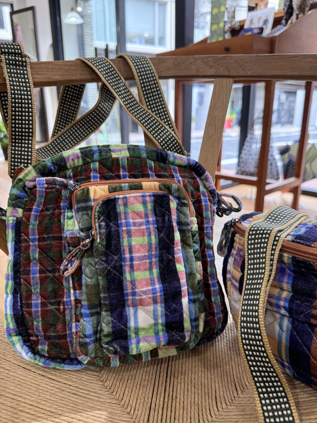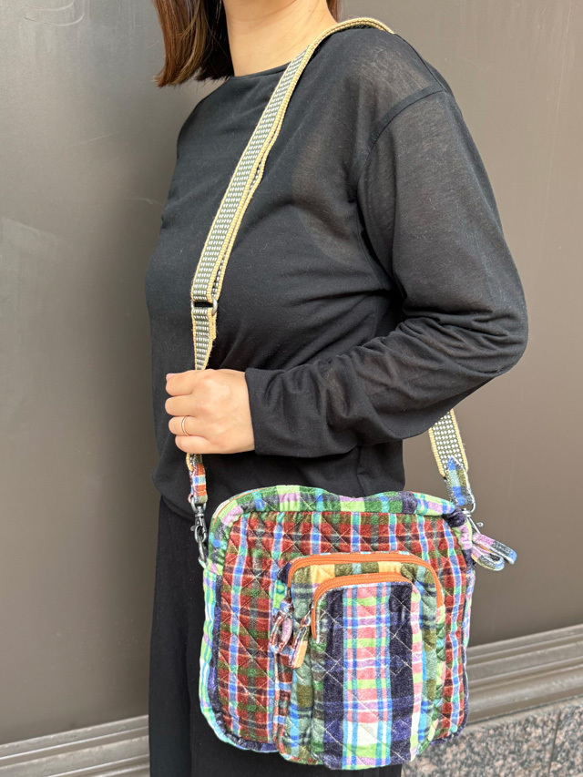 艶のあるベルベット生地にキルティングが施された優しい手触りのバッグシリーズに、今季スクェア型のクロスボディバッグが新登場しました!長さ調整ができるハンドルが付いて、斜め掛け、肩掛け両方使える2WAYタイプ。外ポケットは携帯用と一般用のポケットが重なるデザインで、内ポケットも付いて、実用性にも優れています。