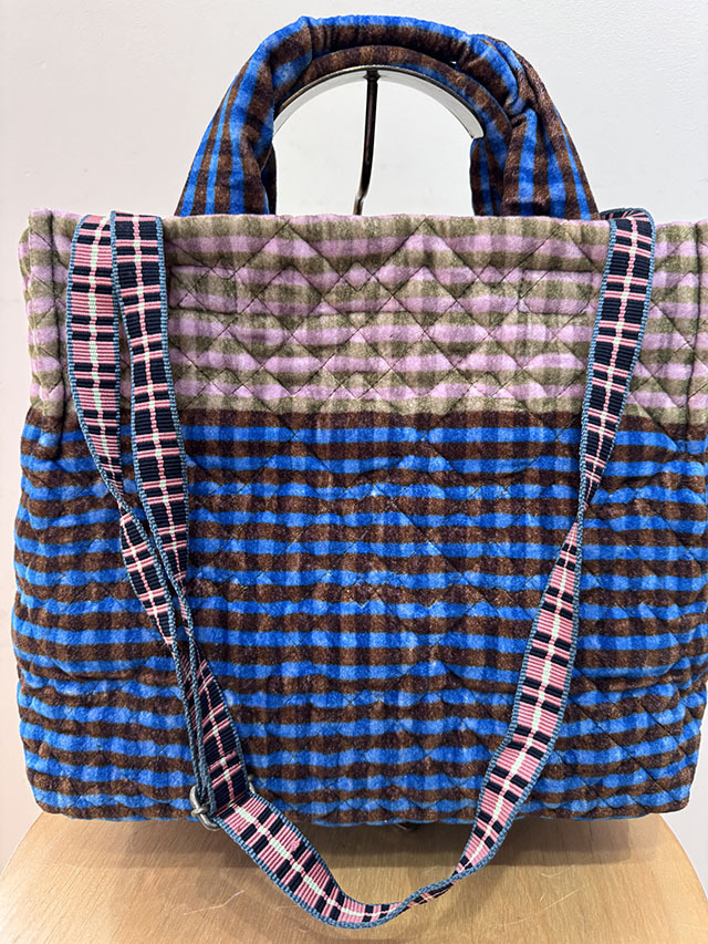 艶のあるベルベット生地にキルティングが施された、優しい手触りのバッグシリーズ。北欧の人々が愛する「伝統的なチェック柄」をエピスのカラーリングでスタイリッシュに変化させました。