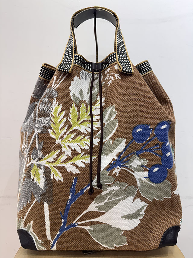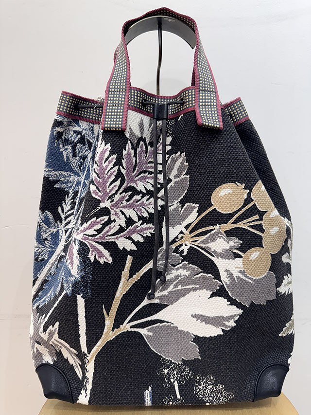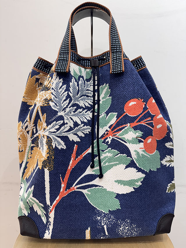 定番の麻バッグが今季、素材をコットンに変えて新登場。防水加工が施された綿素材は、通年使える優れものです。柄は18世紀の≪デンマークの植物図鑑≫からインスパイアされたボタニカル柄で温もりあるアートの香りが魅力です。