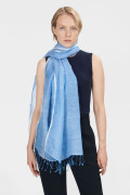 エピス春夏定番の『無地ストール』。素材は上質な麻100%、贅沢なサイズ感が、巻いた時にはほどよいボリューム感と美しいドレープを作り、華やかさを演出します。「先染め」した異なる2色の糸を織っているため、奥行き感のあるシャンブレー風の色合いが魅力です。糸の一色に白が使われることが多く、淡色との組合せだと軽くて涼しげな風合いになり、濃色だと重くなりすぎない抜け感のある印象になるのが特徴です。